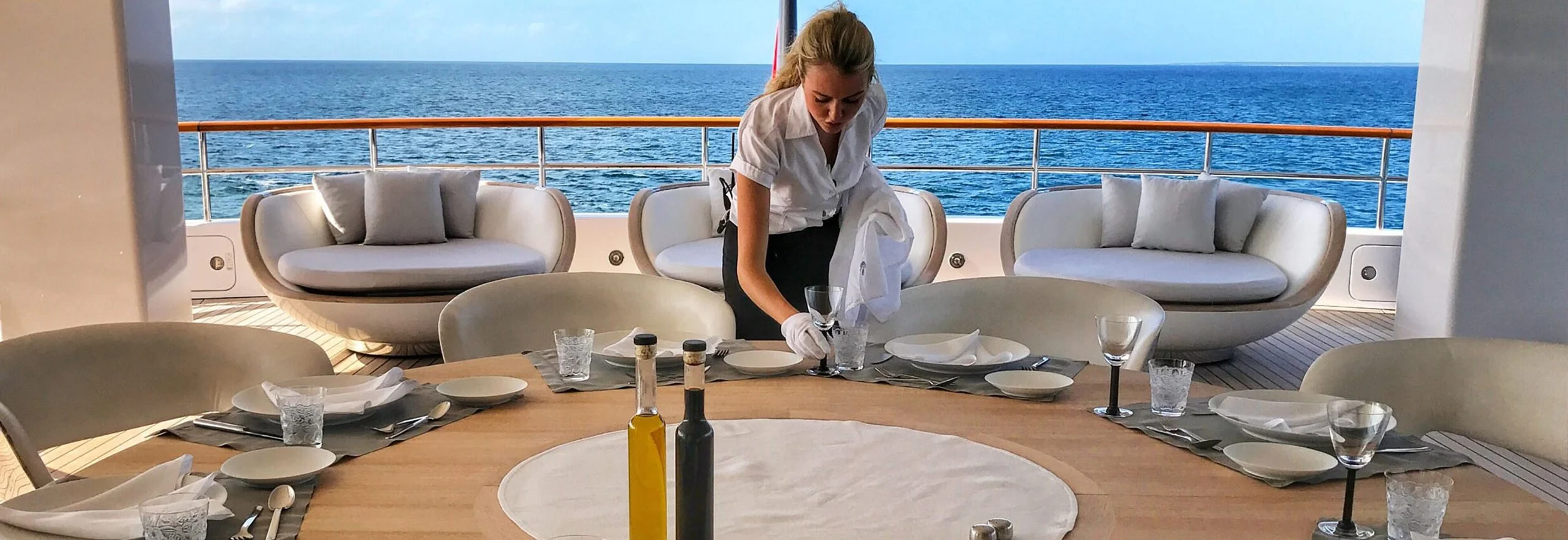 Guests off, carpets in. Our crew of 40+ fitters work fast to transform interiors in the short windows between charters — so your yacht is spotless and ready for the next guests without a hitch.